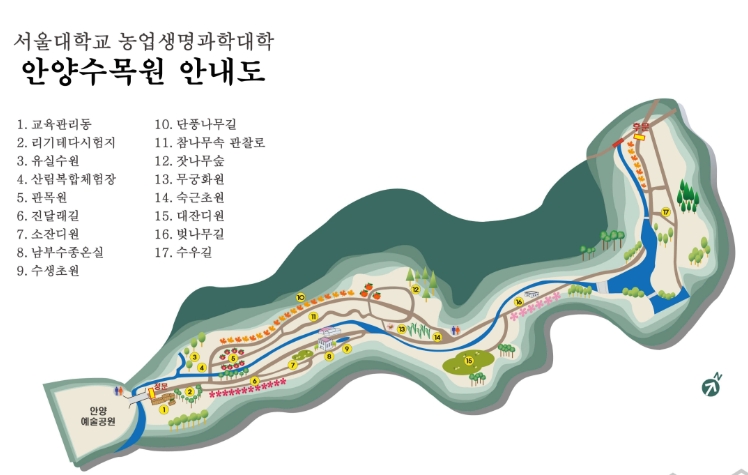 1967년 학술 목적으로 조성돼 일반에 공개되지 않았던 서울대학교 관악수목원이 ‘서울대학교 안양수목원’이라는 새 이름을 달고 58년만에 시민에게 상시 개방 되었습니다.